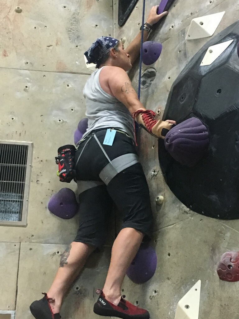 Indoor rock climbing is one of the most adaptive sports out there. Maybe because there’s no “right” way to scale a wall, maybe because you always need a friend to belay you and they will inevitably help you solve a challenging section. At first I assumed I could never really do it because of my damaged palm and my lack of grip strength.